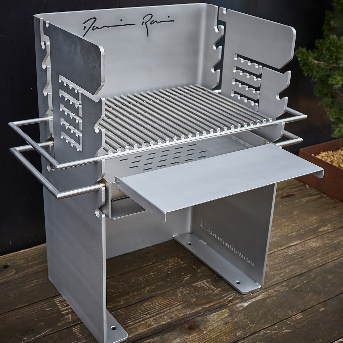 Surface d’appoint pour plats et ustensiles.Se fixe facilement sur le grill et reste amovible.